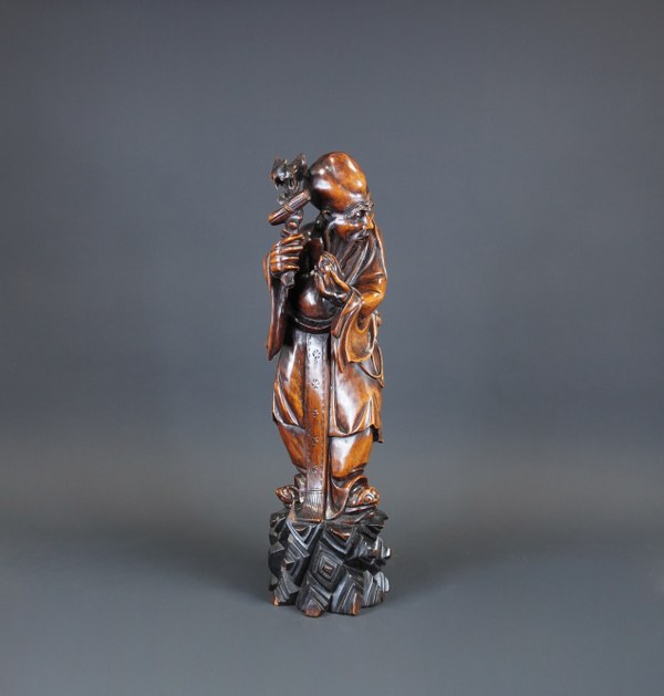 Statuette d'immortel en bois. Chine, travail du XXème siècle. Accidents.
