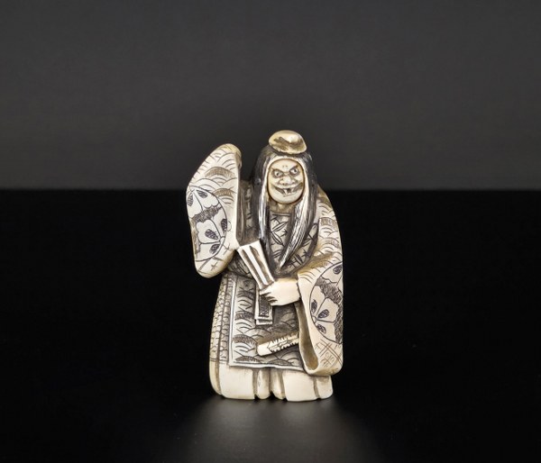 Japon, fin du XIXe siècle (Meiji). Okimono en ivoire d'éléphant..