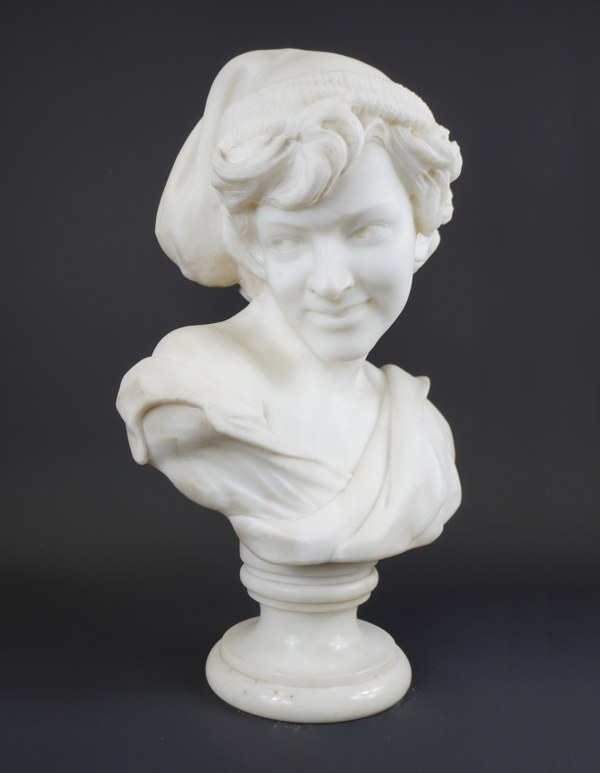 Jean-Baptiste CARPEAUX (1827-1875). Rieur napolitain. Buste sur piédouche en marbre..