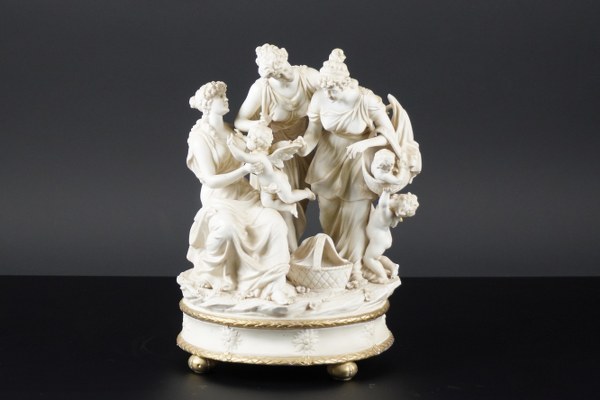 Groupe en biscuit de forme ronde composé de trois femmes..