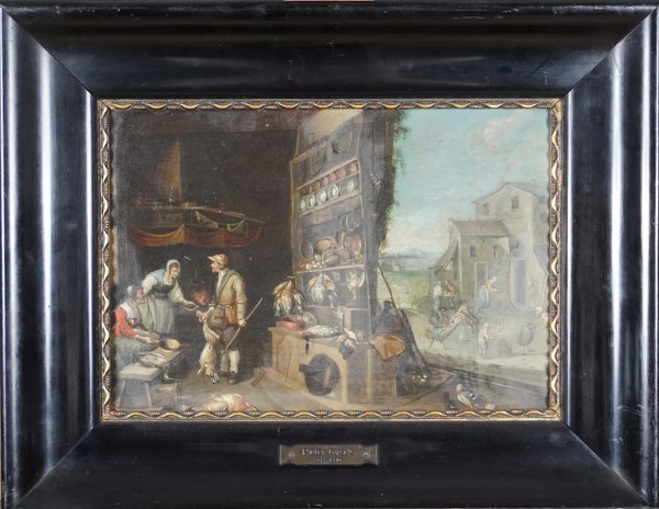 École Flamande du XVIIIème siècle. La marchande de gibier. Cuivre...