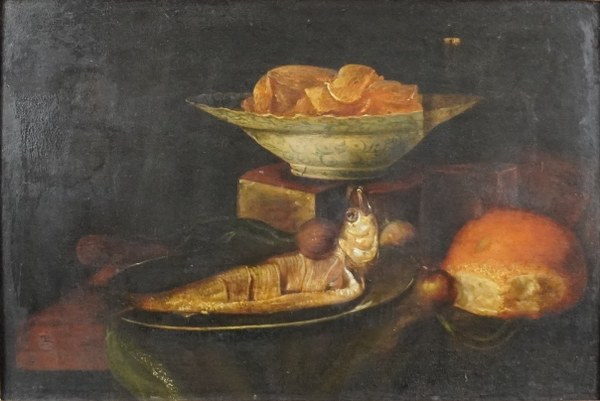 Attribué à Cornelis MAHU (1613-1689). Nature morte au hareng. Panneau..