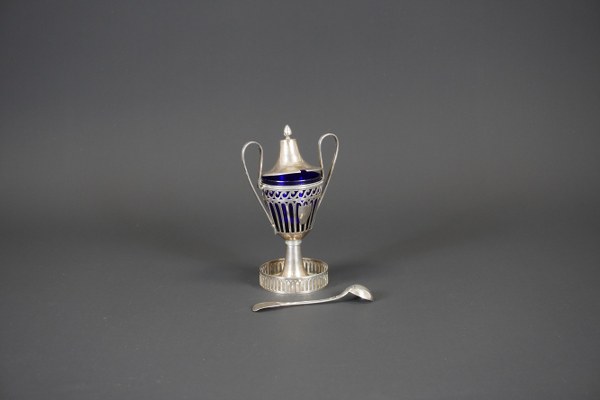 Moutardier couvert en argent, en forme d'urne sur piédouche, le..