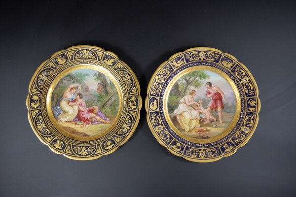 VIENNE. Deux assiettes en porcelaine à décor polychrome et doré..