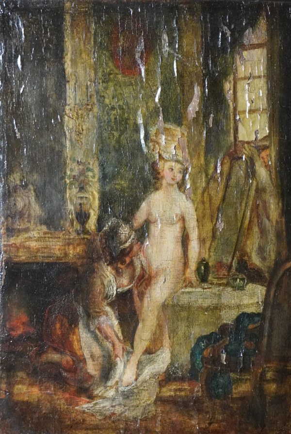 École du XIXème siècle, suiveur de Schall. La toilette. Huile..