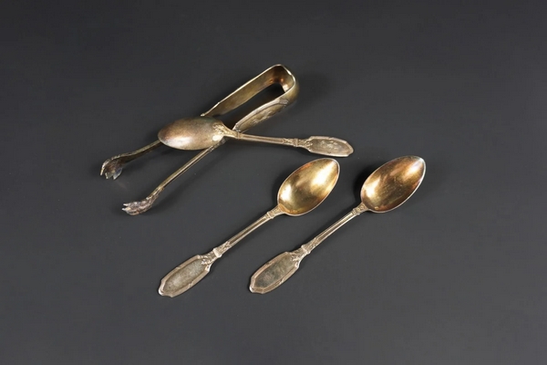 Écrin comprenant 12 petites cuillères et une pince à sucre..