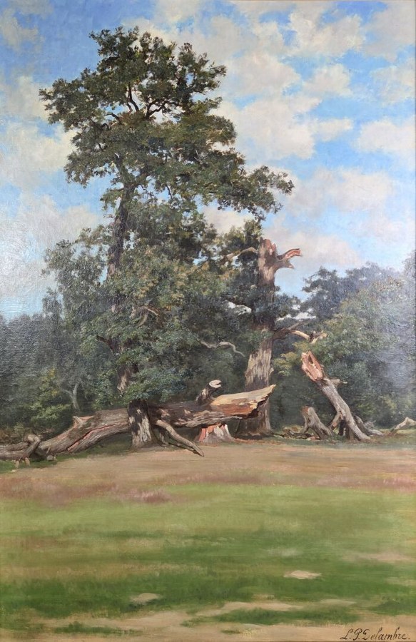 Léon Pierre DELAMBRE (1846-1916). Clairière à l'arbre cassé. Huile sur..
