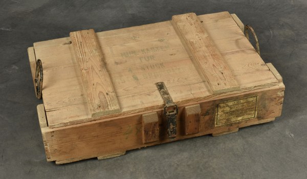 Caisse KVK 42. En bois, les cordelettes de transport sont..
