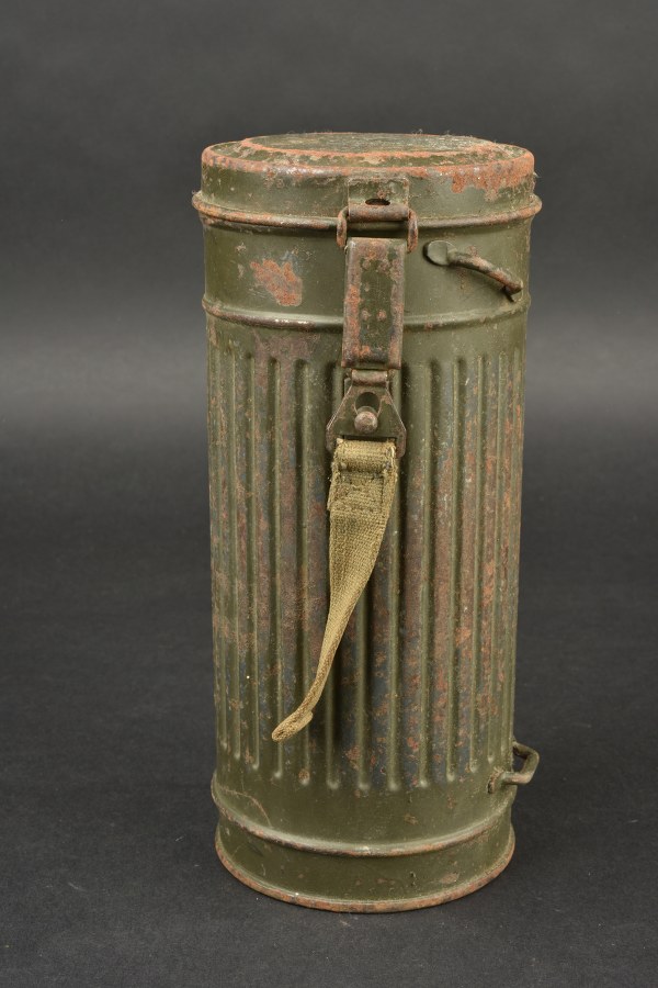 Boitier de masque anti-taz. Modèle long. En métal, peinure Feldgrau..