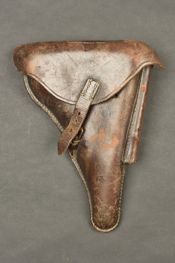 Holster pistolet P08. En cuir marron, toutes les sangles sont..
