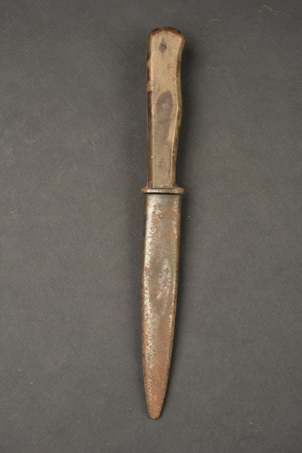 Couteau de botte allemand. Garnitures en métal. Plaquettes en bois,..
