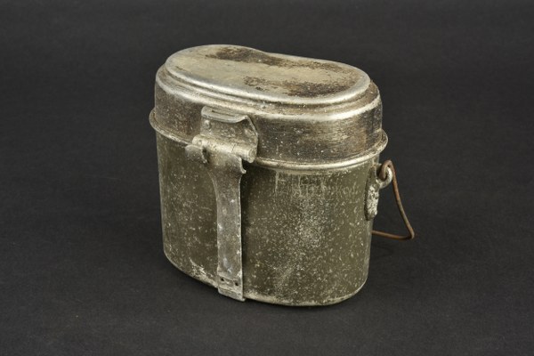 Gamelle allemande. En aluminium. La poignée de transport est présente,..