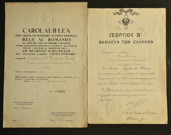 Lot de 2 diplomes de médailles grecque et roumaine de..