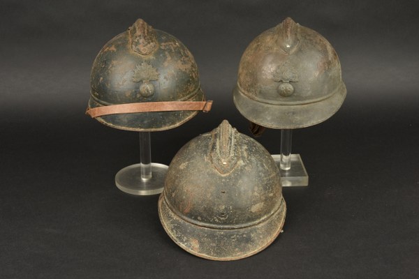 Lot de 3 casques Adrian modèle 1915. Un beau casque..