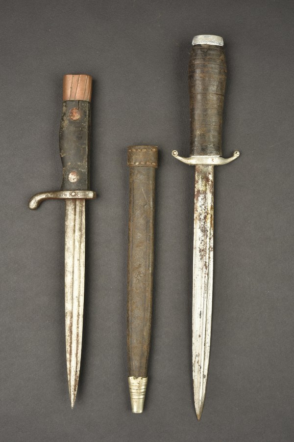 Poignards de tranchée artisanaux type clou et couteau. Un poinçon..