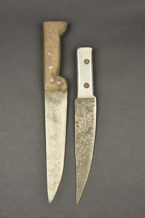 Lot de 2 poignards de tranchée artisanaux. Un poignard réalisé..