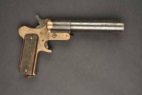 Pistolet lance fusée 1917 court Chobert . En bronze, plaquettes..