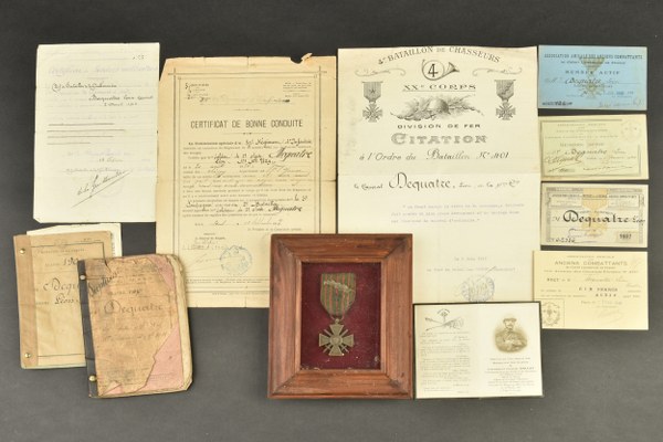 Ensemble de médaille, documents, diplomes et citation d'un soldat du..
