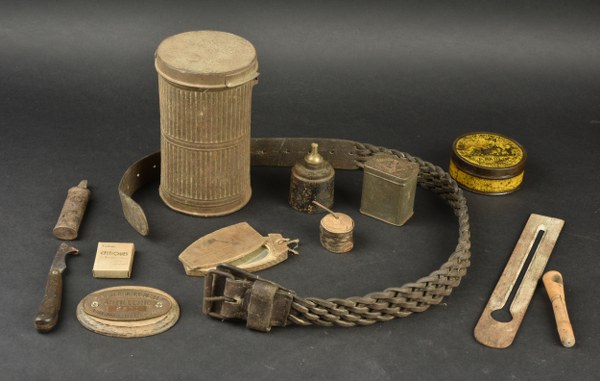 Lot d'équipement français 1e Guerre. Comprenant un bidon de 1..