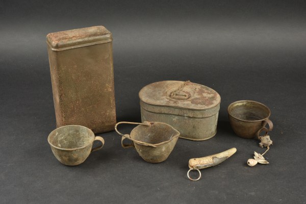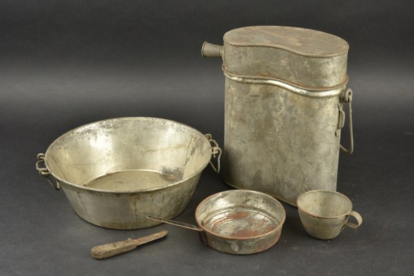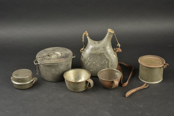 Lot d'équipement français 1e Guerre. Comprenant une gamelle haricot avec..