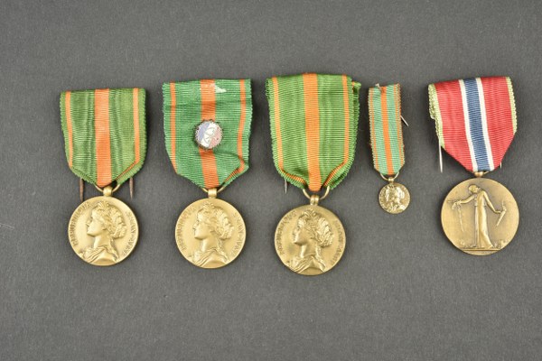 Ensemble de 5 médailles de la 1ère Guerre. Constitué d'une..