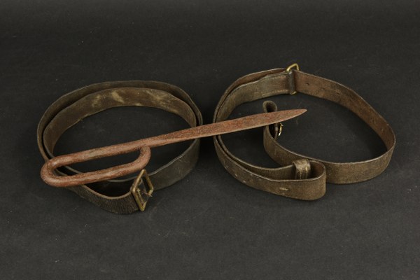 Lot d'équipements. Comprenant deux bretelles de fusil Lebel dont une..