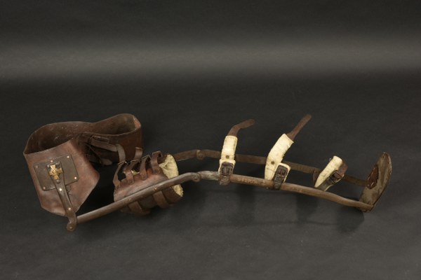 Prothèse personnalisée par un blessé de guerre. Prothèse de jambe..