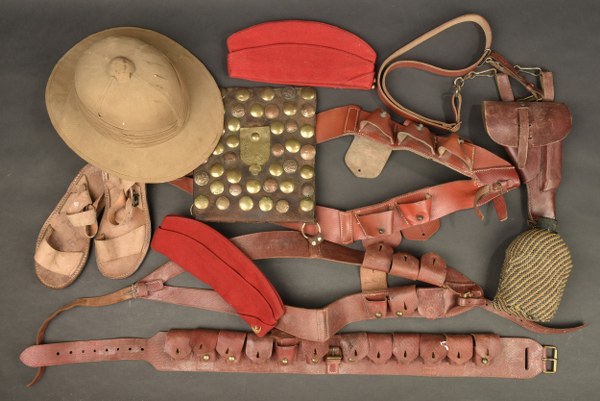 Lot d'équipements spahis. Comprenant un ceinturon cartouchière en cuir rouge..