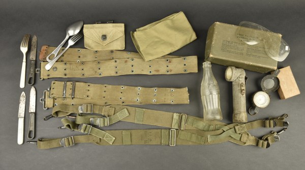 Equipements US. Comprenant un couteau de mess US daté 1918...