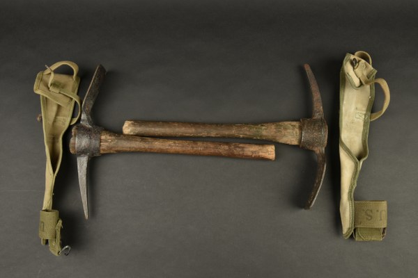 Pioches individuelles US. Comprenant deux manches en bois, présentant des..