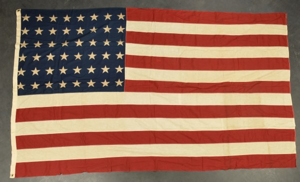 Drapeau US. En tissu coton, fabrication en plusieurs parties. 48..