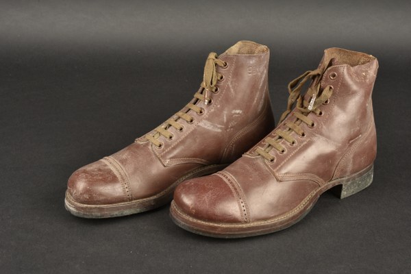Brodequins US. Paire homogène en cuir lisse marron. Bouts rapportés...