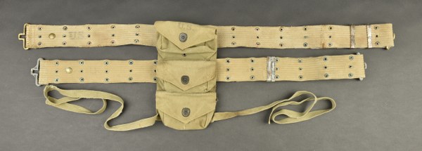Ceinturons M-36 US. Deux ceinturons en toile OD. Bouclerie en..
