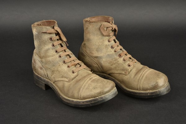 Brodequins US. Paire homogène en cuir retournés. Bouts rapportés. Les..