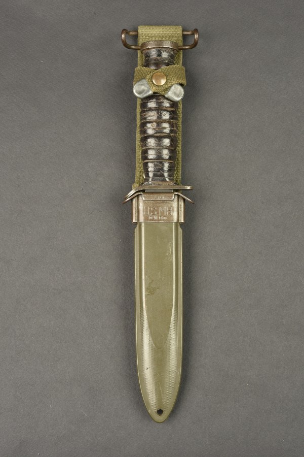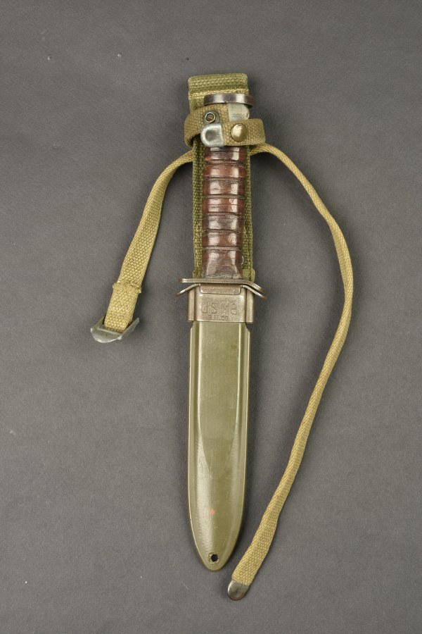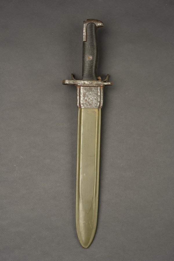 Baïonnette de Garand. Modèle courte. Plaquettes en bakélite. Les garnitures..