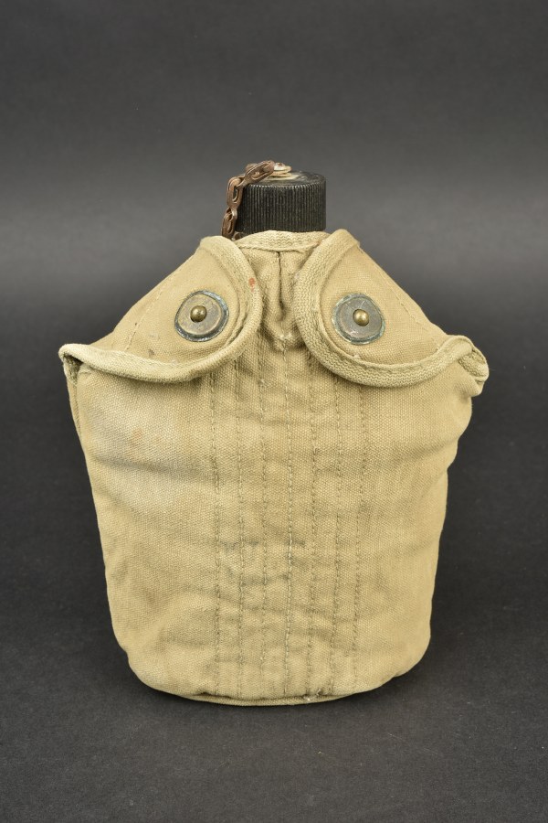 Gourde US. Housse en forte toile OD, reste de marquage..