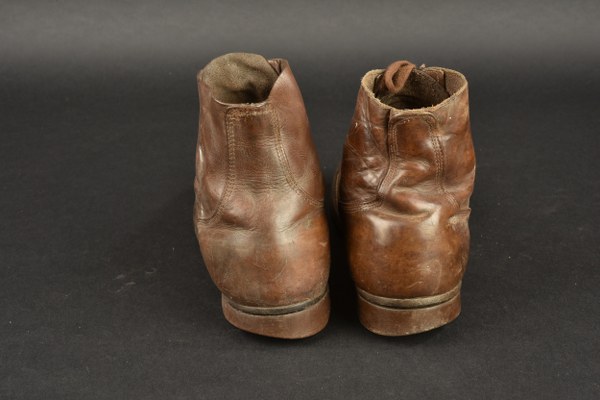 Brodequins US. Paire homogène en cuir marron lisse. Bouts rapportés...
