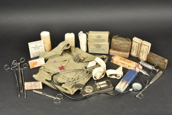 Accessoires médicaux US. Comprenant un bandage ouvert. Une seringue en..