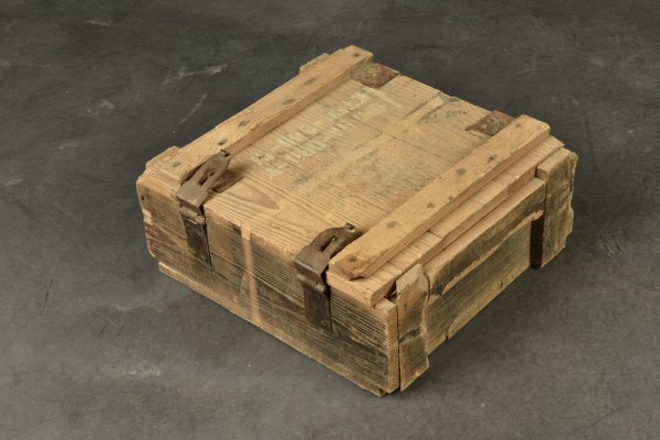 Caisse à munition US. En bois avec son couvercle. Marquages..