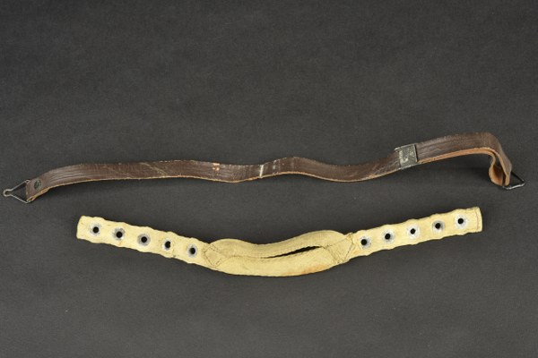 Mentonnière de parachutiste US. En toile kaki. Cinq œillets de..