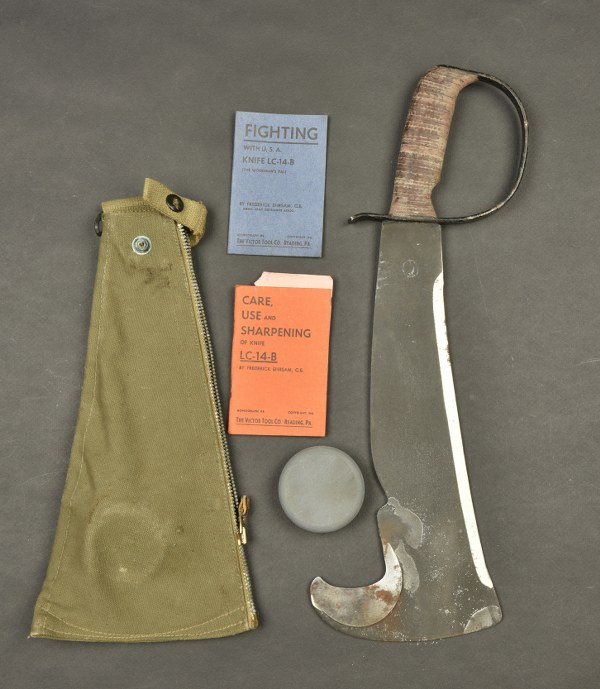 Machette LC-14-B. Manche en cuir, garde en métal. Lame complète..