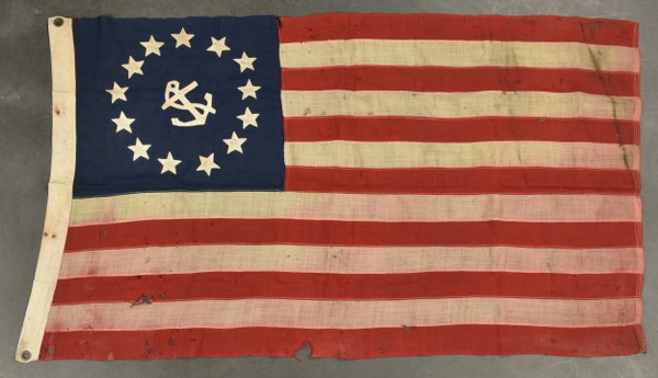 Pavillon nautique US provenant de Carentan. En tissu coton imprimé...