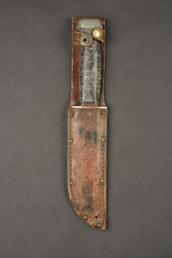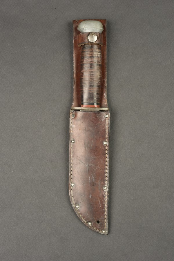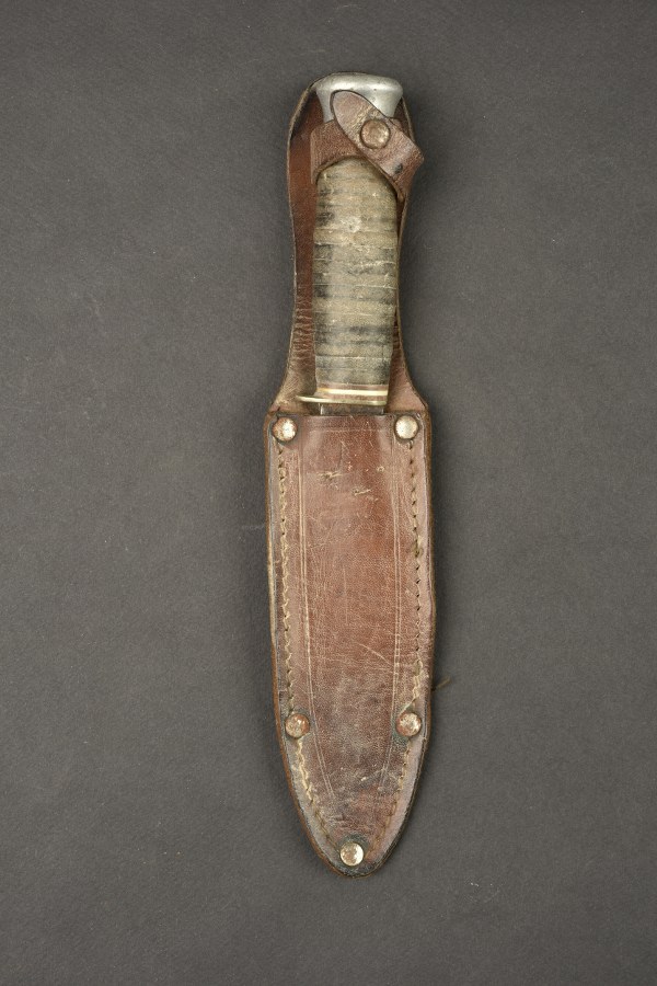 Couteau USN. Garnitures en métal. Manche composée d'anneaux en cuir...