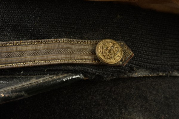 Casquette d'officier de l'US Navy. Coiffe en tissu coton beige...