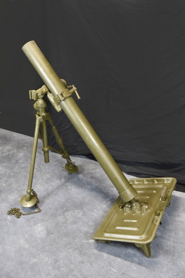 Mortier de 60mm US. Plaque en métal, peinture kaki à..