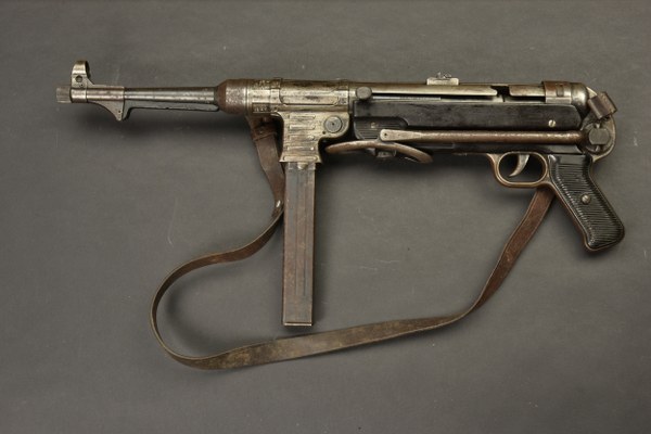 Pistolet mitrailleur MP 40. Les parties métalliques sont quasiment dépourvues..