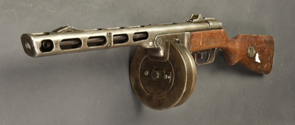 Pistolet mitrailleur PPSH 41. Le bronzage des garnitures métalliques est..