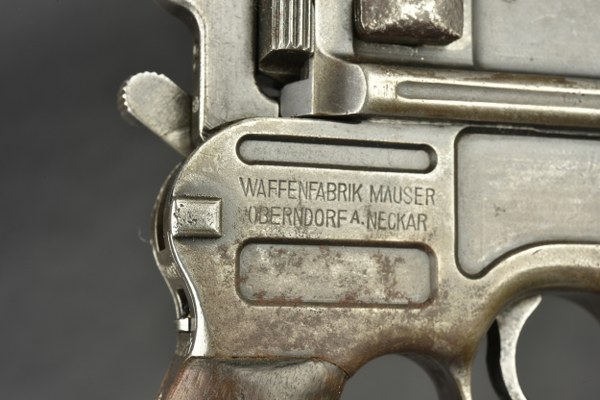 Pistolet C96. Bronzage à 60%. Plaquette en bois, anneau en..