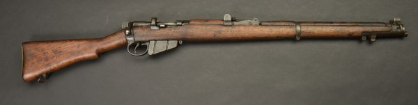 Fusil Lee Enfield. Les garnitures métalliques présentes des traces d'oxydation...