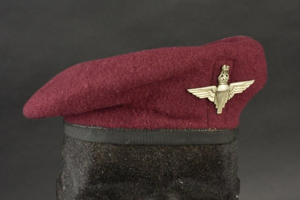 Béret de parachutiste anglais. En drap de laine amarante. Cap..